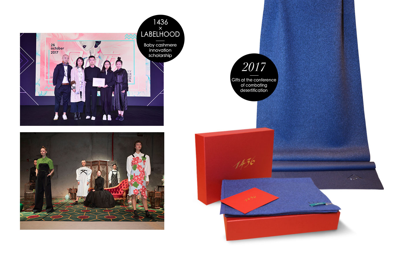 1436 x LABELHOOD Baby Cashmere Innovation Scholarship was founded upon a strategic collaboration between 1436 and LABELHOOD. One designer will be awarded the scholarship from the collection released by LABELHOOD every season. Both parties hoped to focus on promoting cashmere as a rare and valuable material, and with young designers’ creativity, exploring the topic of cashmere innovation on the premise of better helping local designers of China. In 2017, the first Baby Cashmere Innovation Scholarship was awarded to SHUSHU/TONG.